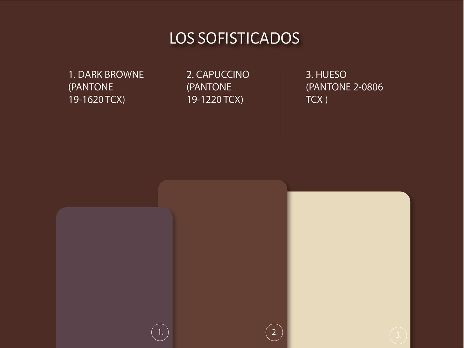 LOS SOFISTICADOS: El marrón emerge como un nuevo esencial de la paleta de lujo, con la reinterpretación de los clásicos de culto. La pareja complementaria de Dark Browne y el color Hueso son colores clave de la temporada y aportan una sofisticada novedad.