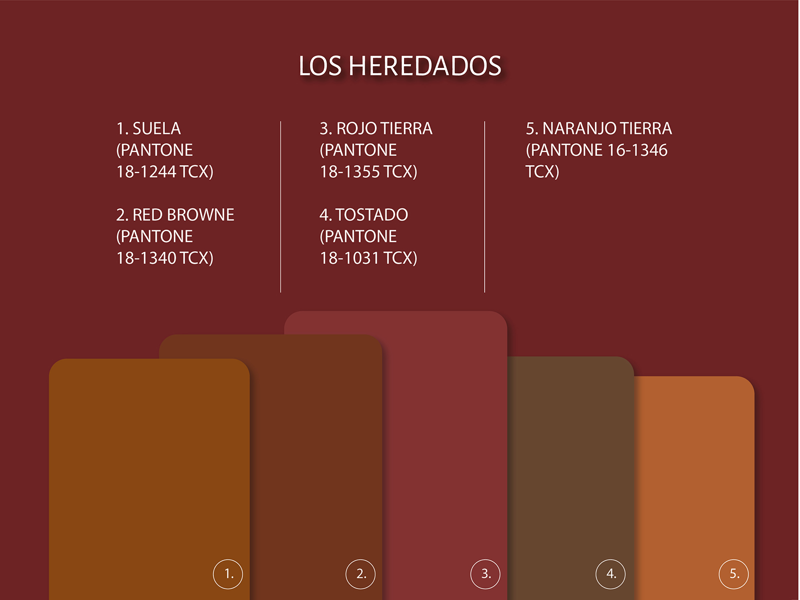 LOS HEREDADOS: Esta paleta de tonos ricos y cálidos se inspira en referencias históricas, en el arte y en la artesanía clásica. Es una paleta para mezclar el pasado con el presente.