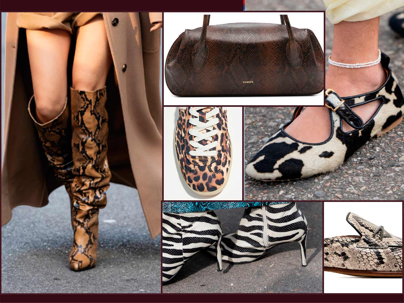 La tendencia animal print continúa esta temporada, y si bien el leopardo sigue presente, ahora comparte el protagonismo con los estampados de cebra, serpiente y vaca.