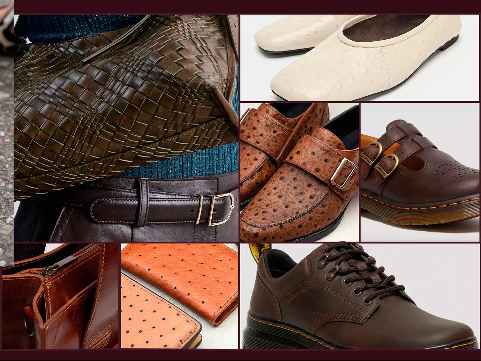 Herencia, saber hacer, el arte de trabajar la piel. Re-apropiación de conocimientos tradicionales en clave moderna. Estampas en tonos de larga duración para una mayor longevidad. Reinterpretación de estampas antiguas, como la piel de avestruz. Pieles pull-ups mates y con brillo.